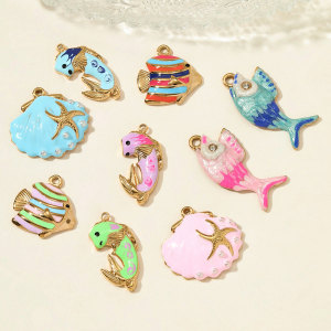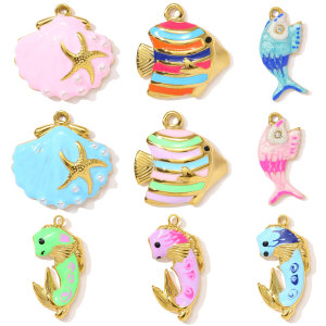 法式滴油海星贝壳diy不锈钢吊坠女热带海鱼耳环钛钢饰品挂坠