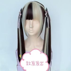 秋日假发女直发齐刘海jk洛丽塔中长款百搭金挑染巧克力网红全头套