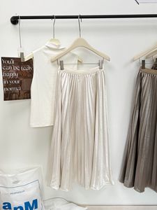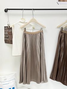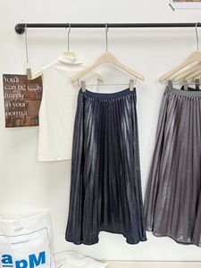 高级感缎面气质中长款垂感显瘦a字百褶裙流光半身裙新款女2025秋