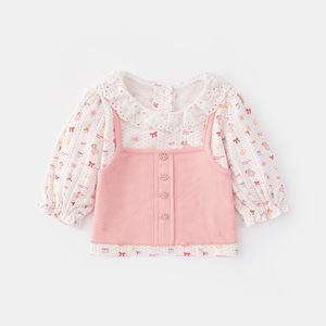 女童长袖打底衫2025新款秋装儿童假两件洋气卡通上衣女宝宝5528