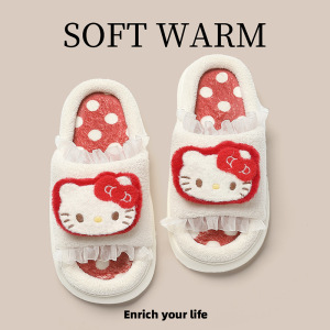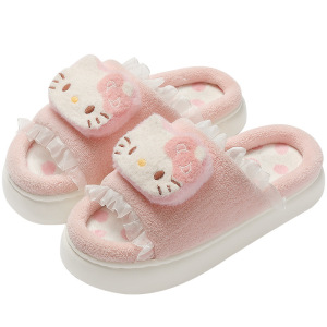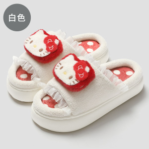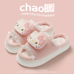 露趾厚底棉拖鞋女春秋季三丽鸥可爱卡通室内家居家用女士毛毛拖鞋