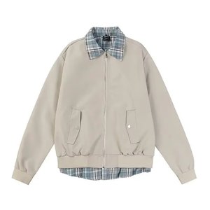 假两件格纹拼接夹克外套男秋季美式复古ing宽松休闲情侣上衣
