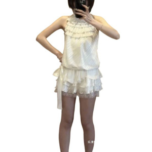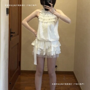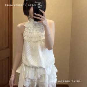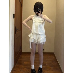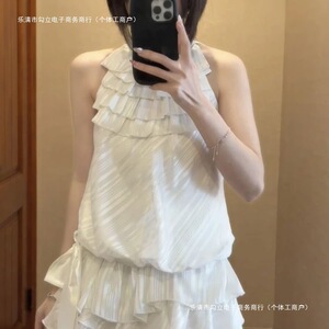 小个子新款古早感雪纺挂脖上衣+半裙两件套2025夏季少女心事上衣