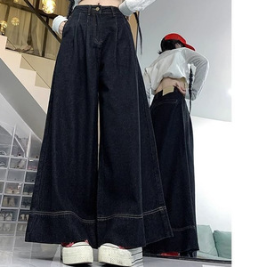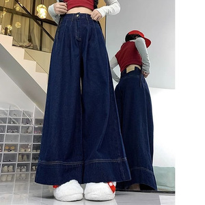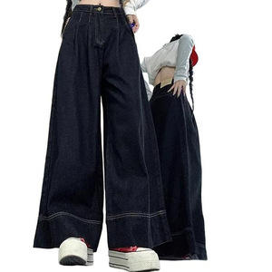 显瘦高腰宽松大码蓝色直筒阔腿裤2025年黑色牛仔裤女复古秋冬新款
