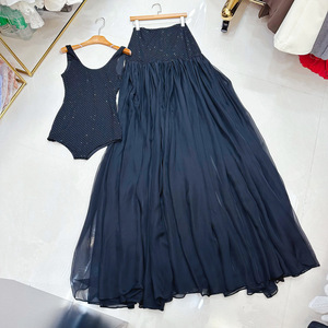 南油欧美澳洲时尚设计小众个性烫钻高腰显瘦网纱半身裙长裙