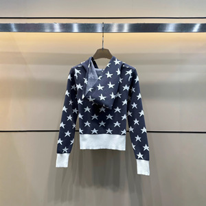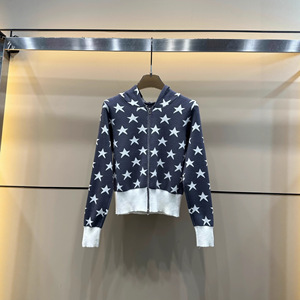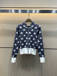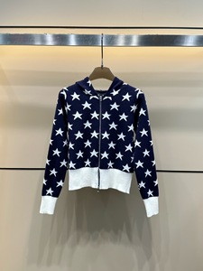 D25秋季新款时尚连帽双拉链五角星提花针织开衫