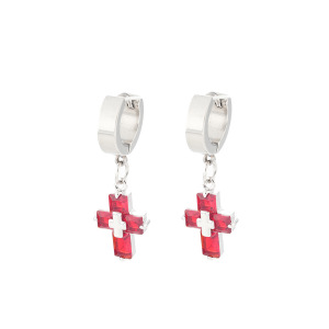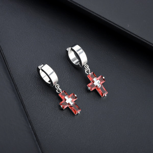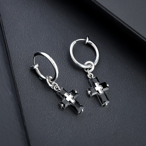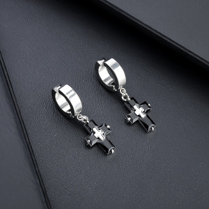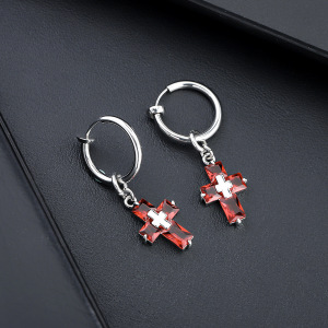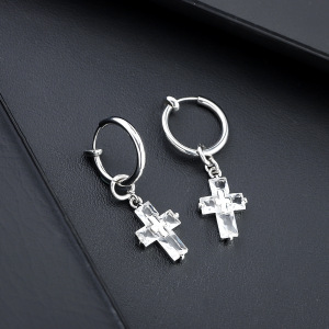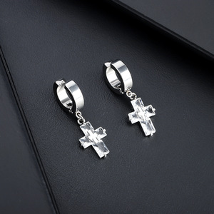 锆石十字架耳夹男潮人网红情侣方形钻无耳洞耳饰女高级感钛钢饰品