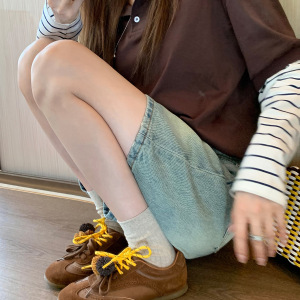 澜柜 2025秋季新款内增高3cm~ 时髦撞色鞋带圆头松果休闲德训鞋女
