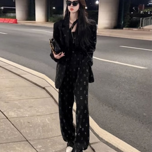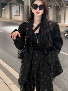 春夏新款气质轻奢高级感重工字母烫钻上衣西装外套裤子显瘦套装女