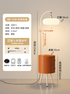 复古落地灯中古家用卧室轻奢高级感床边柜置物架沙发边柜台灯一体