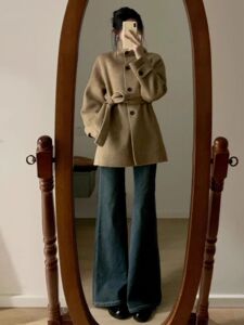 高级感超好看复古立领卡其色毛呢外套女秋冬气质收腰呢子大衣气质