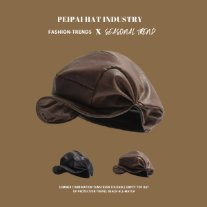 C5495皮革侧褶皱云朵帽 咖啡