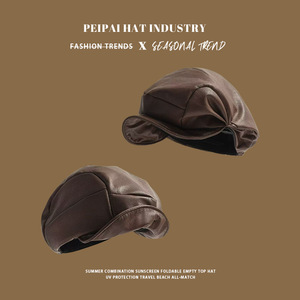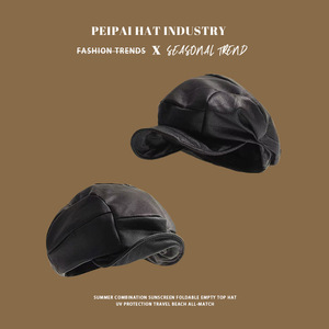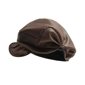 pu皮纯色云朵贝雷帽秋冬复古显脸小英伦报童帽大头围出行报童帽子