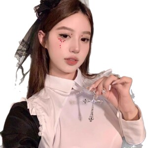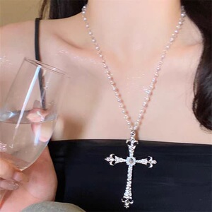 复古暗黑风十字架项链亚文化哥特风长款镶钻毛衣链小众甜酷锁骨链