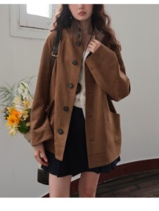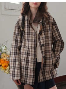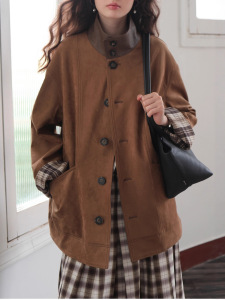 素舶 柔雾感麂皮 格纹正反两面穿VTG立领外套跨境出口外贸女装