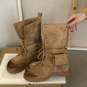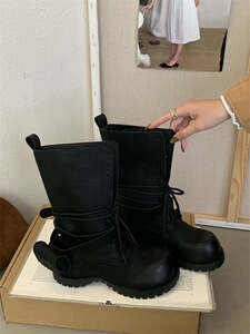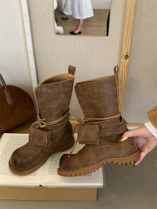 复古马丁靴女2025新款百搭美拉德小个子内增高西部短靴擦色中筒靴