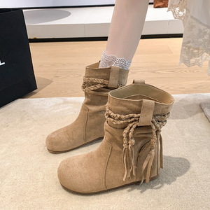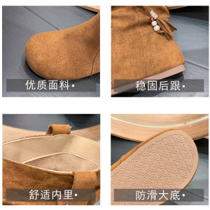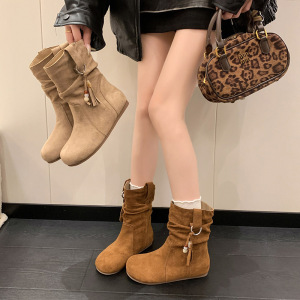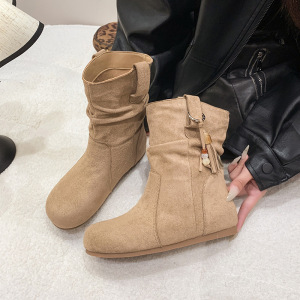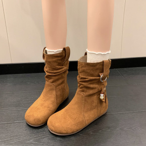 废土风复古褶皱勃肯短筒靴女2025年新款百搭显瘦平底时尚堆堆靴