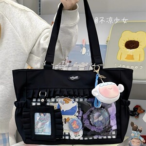 可爱格子荷叶边手提包森系小清新大容量单肩包二次元吧唧痛包娃包