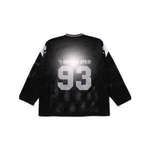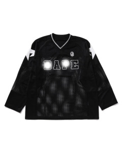 欧美原宿跨境街头个性圆领套头球衣长袖宽松镂空男女同款上衣百搭