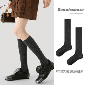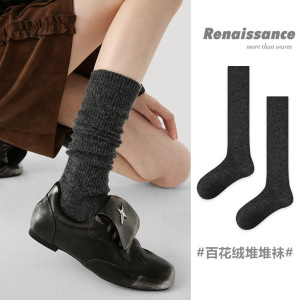 Renaissance原创女袜秋冬中筒袜无骨堆堆袜灰色羊毛袜保暖袜子女