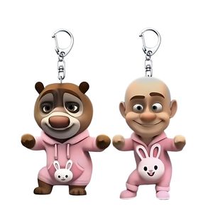 粉红兔熊出没创意动画周边亚克力钥匙扣搞怪抽象书包挂件朋友礼物