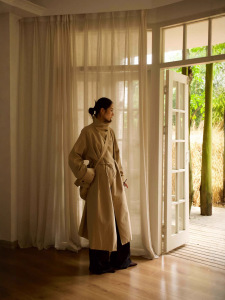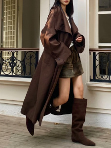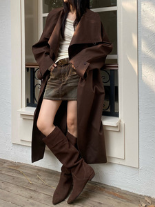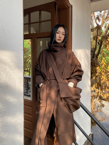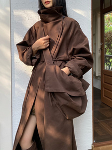 2025秋冬新款高街复古英伦风长款风衣系带收腰立领外套风衣21182
