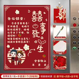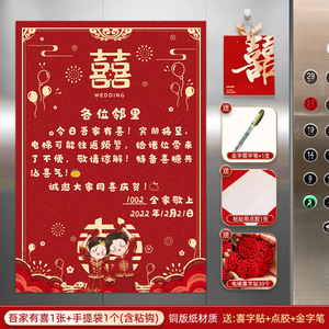 电梯贴纸喜字告示结婚专用喜字贴订婚礼门贴酒店婚房布置囍字贴
