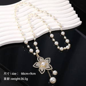 新款珍珠毛衣链小香风小众设计 优雅时尚百搭 秋冬款毛衣链 批发