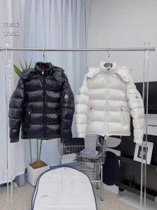 境外爆款蒙家玛雅彩虹保暖羽绒男女短款加厚连帽外套女外贸批发