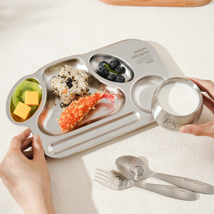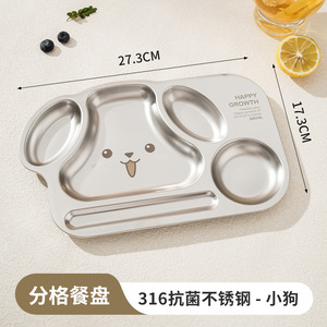 316不锈钢小狗餐盘幼儿园卡通餐盘儿童餐具套装学生快餐盘批发