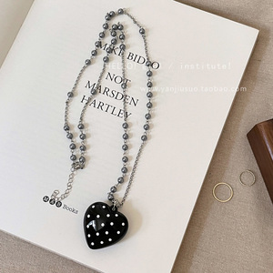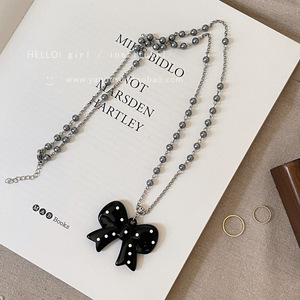 韩系黑色波点蝴蝶结珍珠项链女高级感长款毛衣链小众设计百搭配饰