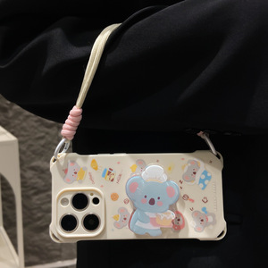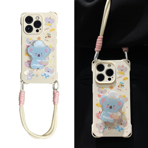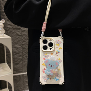 适用苹果16pro手机壳ins考拉支架带挂绳15保护套13斜跨高级感韩系