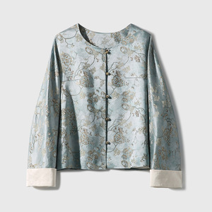 38姆米重工桑蚕丝真丝外套女秋25新中式复古国风提花长袖上衣开衫