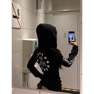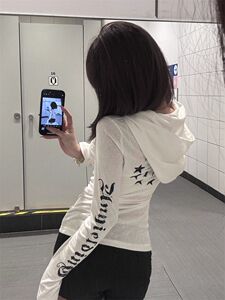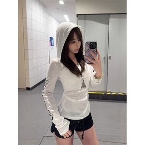 y2k辣妹防晒罩衫女夏季美式长袖连帽长袖t恤亚文化修身显瘦上衣潮