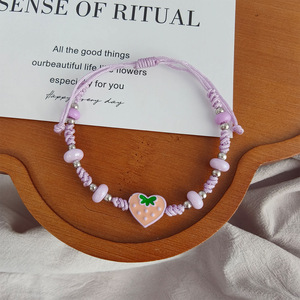 草莓爱心多巴胺合金配件手绳手工编织手链小清新编织手链时尚百搭