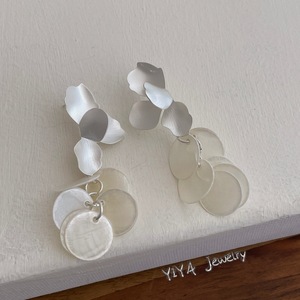 度假风超仙法式复古金属花朵贝壳流苏耳环轻奢高级感小众气质耳钉