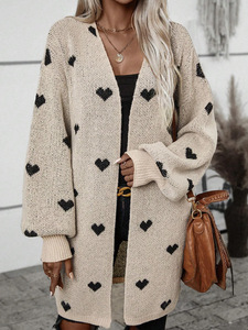 亚马逊跨境长款爱心提花针织衫欧美时尚百搭休闲毛衣外套女