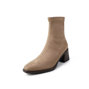 静音底配大衣超有范绒面瘦瘦靴2025秋冬粗高跟通勤方头弹力短靴女