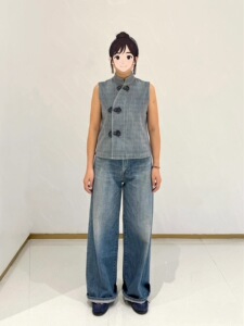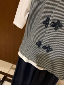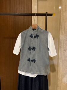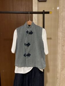 南油小众25秋季新款日系三叶草结饰中式条纹百搭马甲背心上衣女