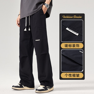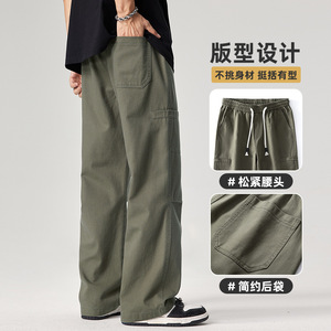纯棉工装裤男士春秋款2025新款拼接痞帅宽松直筒休闲阔腿裤子秋季