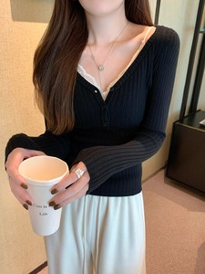 2025春季辣妹别致坑条显瘦打底上衣女早春低领露锁骨内搭针织毛衣