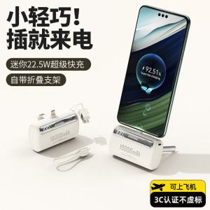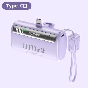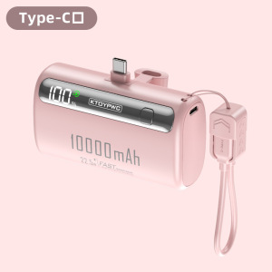 跨境新款10000毫安迷你胶囊充电宝快充自带可拆卸线便携移动电源