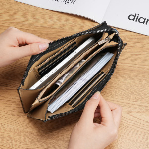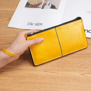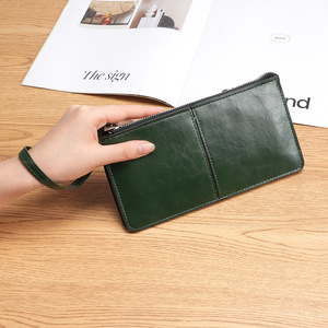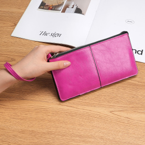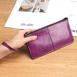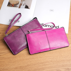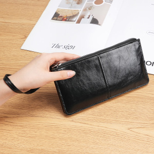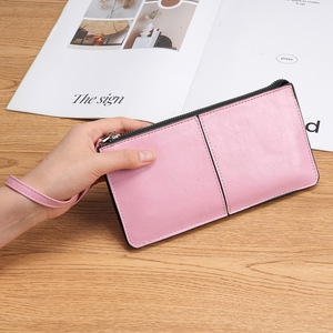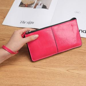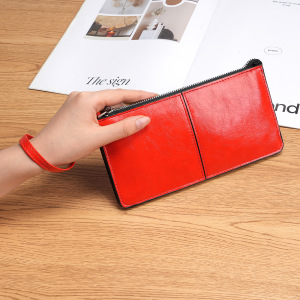 新款女士长款钱包女款拉链搭扣钱夹韩版大容量油蜡皮手拿包女现货