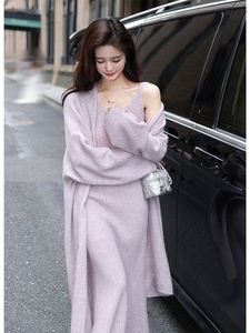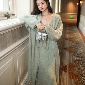 年秋冬温柔气质慵懒风长款针织开衫连衣裙两件套宽松外套女