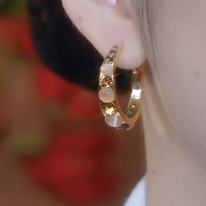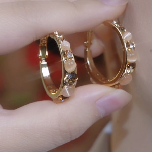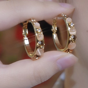 咖色水钻耳圈2025新款耳环潮韩国气质网红轻奢圈圈耳饰耳钉女