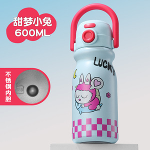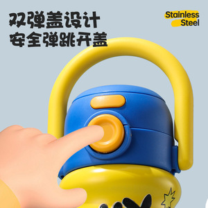 新款高颜值保温杯大容量一盖双饮儿童吸管杯户外便携手提随行杯