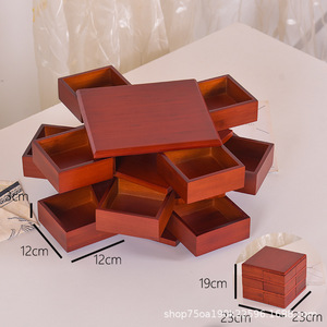 武夷楠竹鲁班旋转机关盒收纳茶具珠宝摆件收纳首饰方形托盘底座