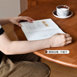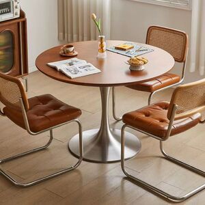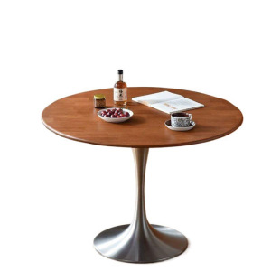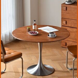 中古风全实木郁金香小圆桌小户型家用复古圆形餐桌椅组合网红饭桌