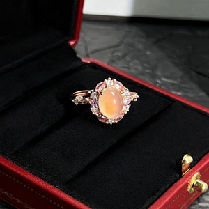 猫眼流萤轻奢甜美玫瑰金色时尚花朵开口戒指女高级感小众百搭指环