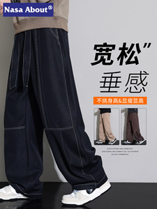 NASA美式复古个性牛仔裤春秋款2025新款宽松垂感青少年大码休闲裤